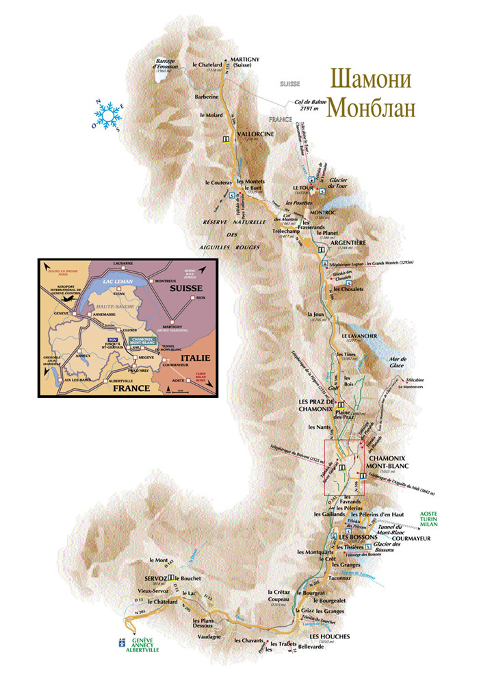 Долина Шамони, протянувшаяся на 16 км, расположена на перекрестке границ Франции, Италии и Швейцарии. Она окружена великолепными склонами, которые гарантируют идеальный снег в любое время зимнего сезона.